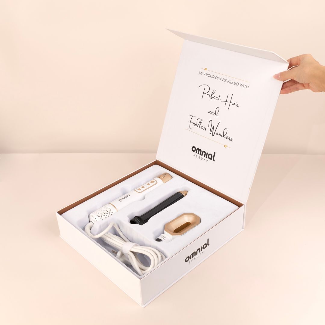 Verabschiede Dich von stressigen Morgenroutinen mit dem Omniair Lite. Als günstigere Alternative zum Omniair Pro ermöglicht er dir ebenfalls, deine Haare ohne extreme Hitze zu stylen. Mit einem Set an einfach zu verwendenden Aufsätzen, hast Du die Freiheit, Dein Haar so zu stylen, wie Du es möchtest.